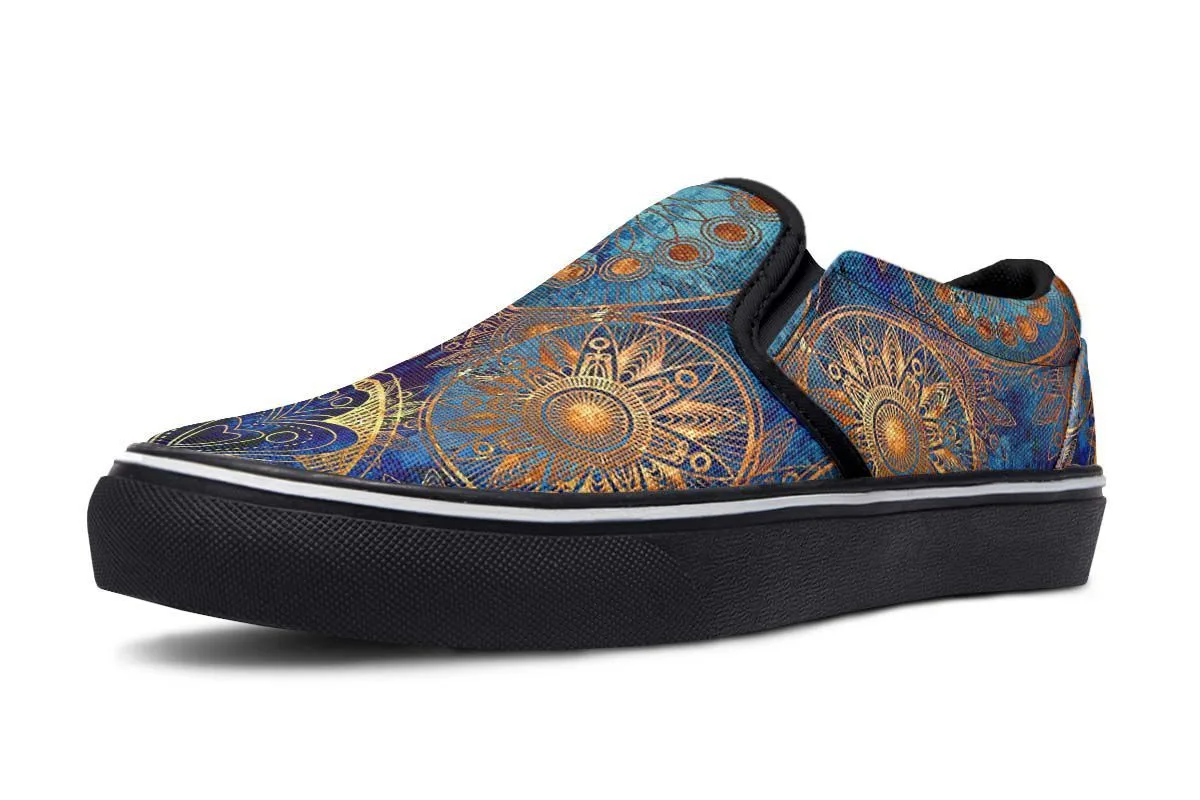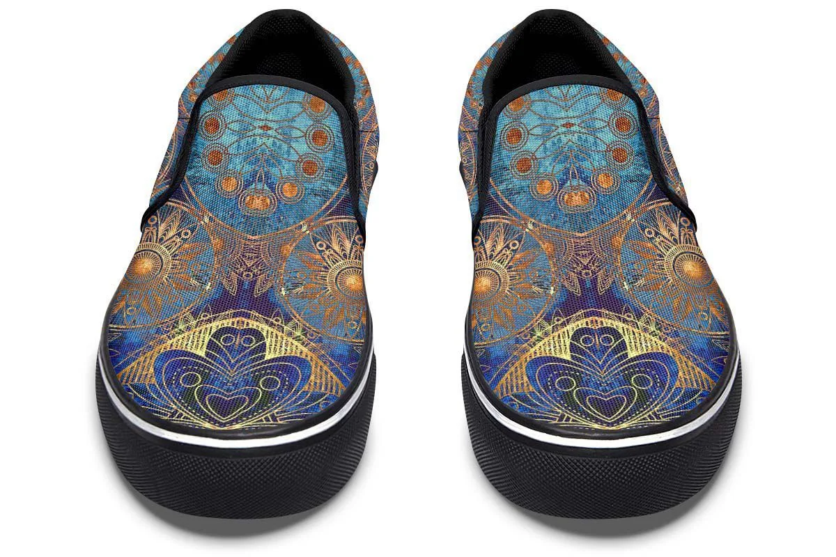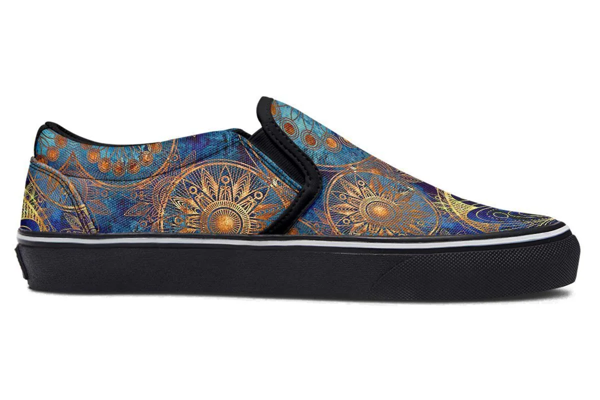 This shoe focuses on materials and design to bring the wearer comfortable, fashionable shoes. Bohemian Mandala Canvas Slip-Ons with sturdy, delicate seams, soft soles and linings, increasing comfort. The canvas material has elegant colors, is breathable and colorfast.