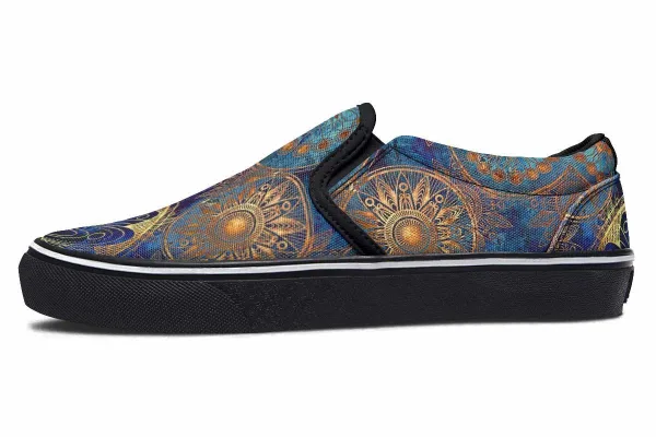This shoe focuses on materials and design to bring the wearer comfortable, fashionable shoes. Bohemian Mandala Canvas Slip-Ons with sturdy, delicate seams, soft soles and linings, increasing comfort. The canvas material has elegant colors, is breathable and colorfast.